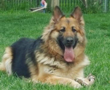 Pearl comes to us from Great Lakes King Shepherds. Pearl is an F2/F3 King Shepherd born on March 18, 2015. Pearl is SOLID as a Rock having fabulous big bone and a nice big head. Really sweet girl with a blend of German Shepherd, Shiloh Shepherd and Giant Alaskan Malamute. Want more of Pearl including her pedigree and health testing... send us a note we love talking about our dogs!!